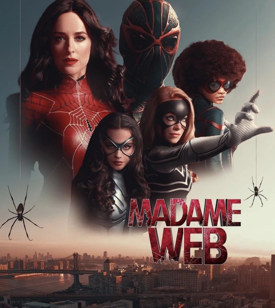 "Meanwhile, in another universe…” In a switch from the typical genre, Madame Web tells the standalone origin story of one of Marvel publishing's most enigmatic heroines. The suspense-driven thriller stars Dakota Johnson as Cassandra Webb, a paramedic in Manhattan who may have clairvoyant abilities. Forced to confront revelations about her past, she forges a relationship with three young women destined for powerful futures...if they can all survive a deadly present.