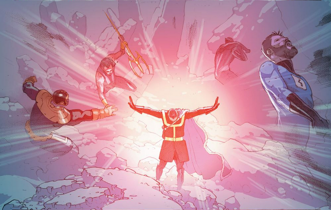 Doctor Strange, Molecule Man, Mister Fantastic, Black Panther, Captain Marvel, Star-Lord, Cyclops/Phoenix, Spider-Man (Peter Parker), Spider-Man (Miles Morales), Thor |