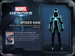 The Stealth Costume, also dubbed the Big Time Costume by fans, is a costume of Spider-Man's created in Horizon Labs by Peter Parker.