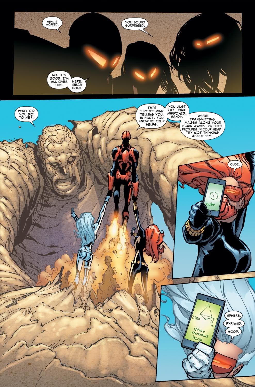Spider-Man using his "Pink Hippo" app on Sandman
